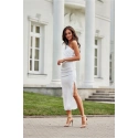 Midi šaty na jedno rameno s jemným rozparkem na nohavicích jsou vyrobeny z jemné saténové tkaniny. Na boku je řasení, které dokonale zakryje případné nedokonalosti. Široké ramínko s řasením na jednom rameni jim dodává jedinečný charakter. Zapínají se na krytý zip na boku šatů. Tyto midi šaty jsou nejen elegantní, ale také funkční. Midi délka dodává šatům rafinovaný, ženský styl. Tento střih šatů vám umožní cítit se originálně tím, že zdůrazní váš osobitý styl, a jistě upoutá pozornost tím, že vás odliší z davu, ať už se jedná o jakoukoli příležitost. Výrobek je vyroben a ušit v Polsku.