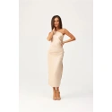 Midi šaty na jedno rameno s jemným rozparkem na nohavicích jsou vyrobeny z jemné saténové tkaniny. NVíce