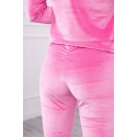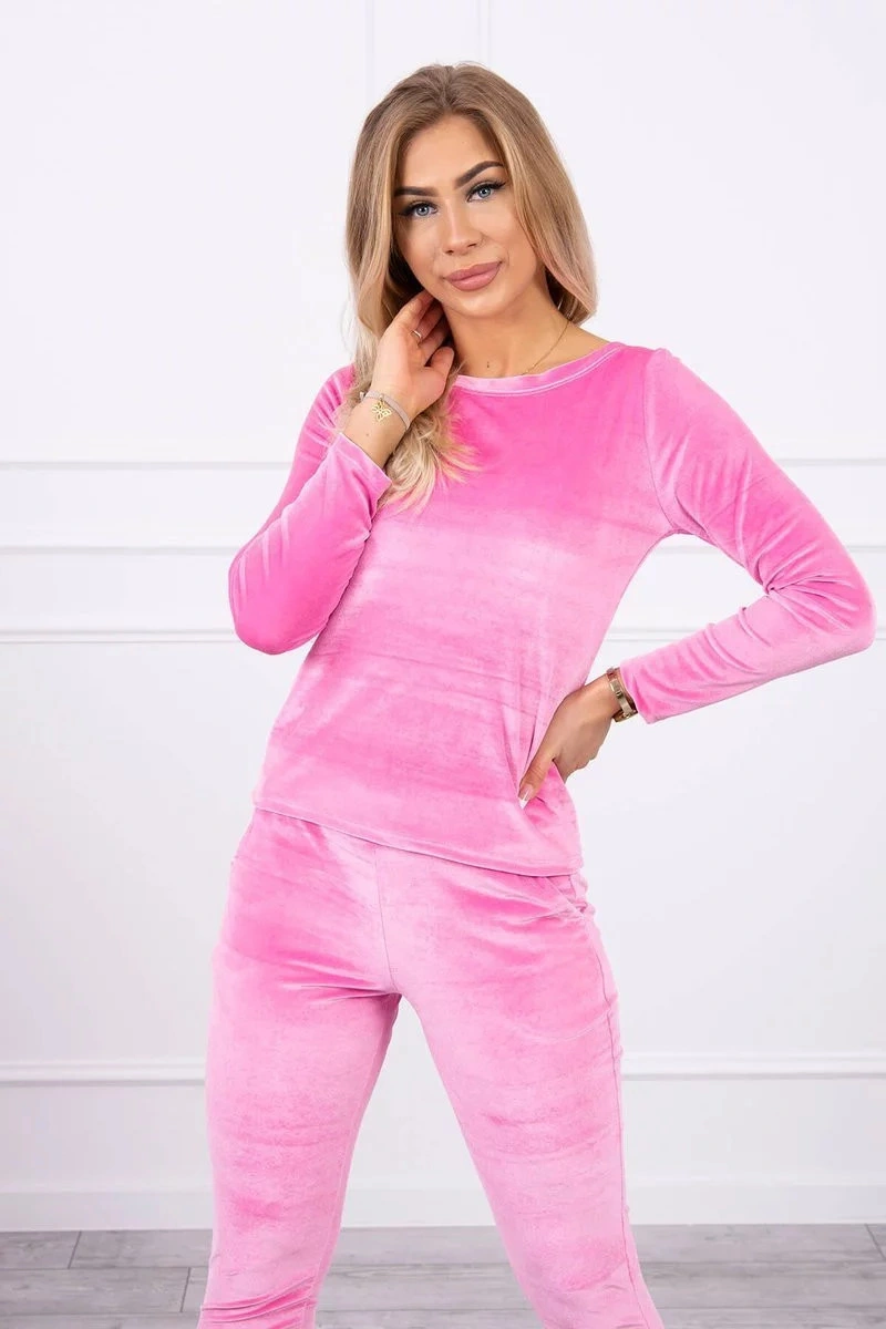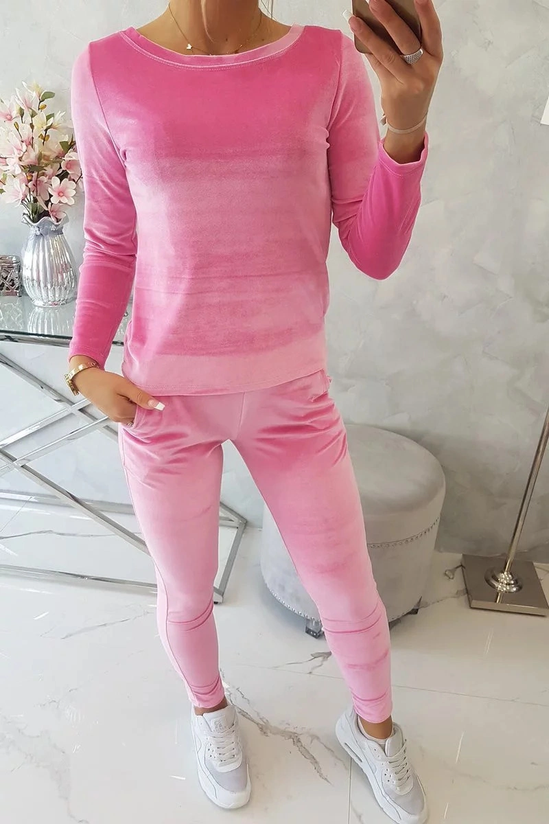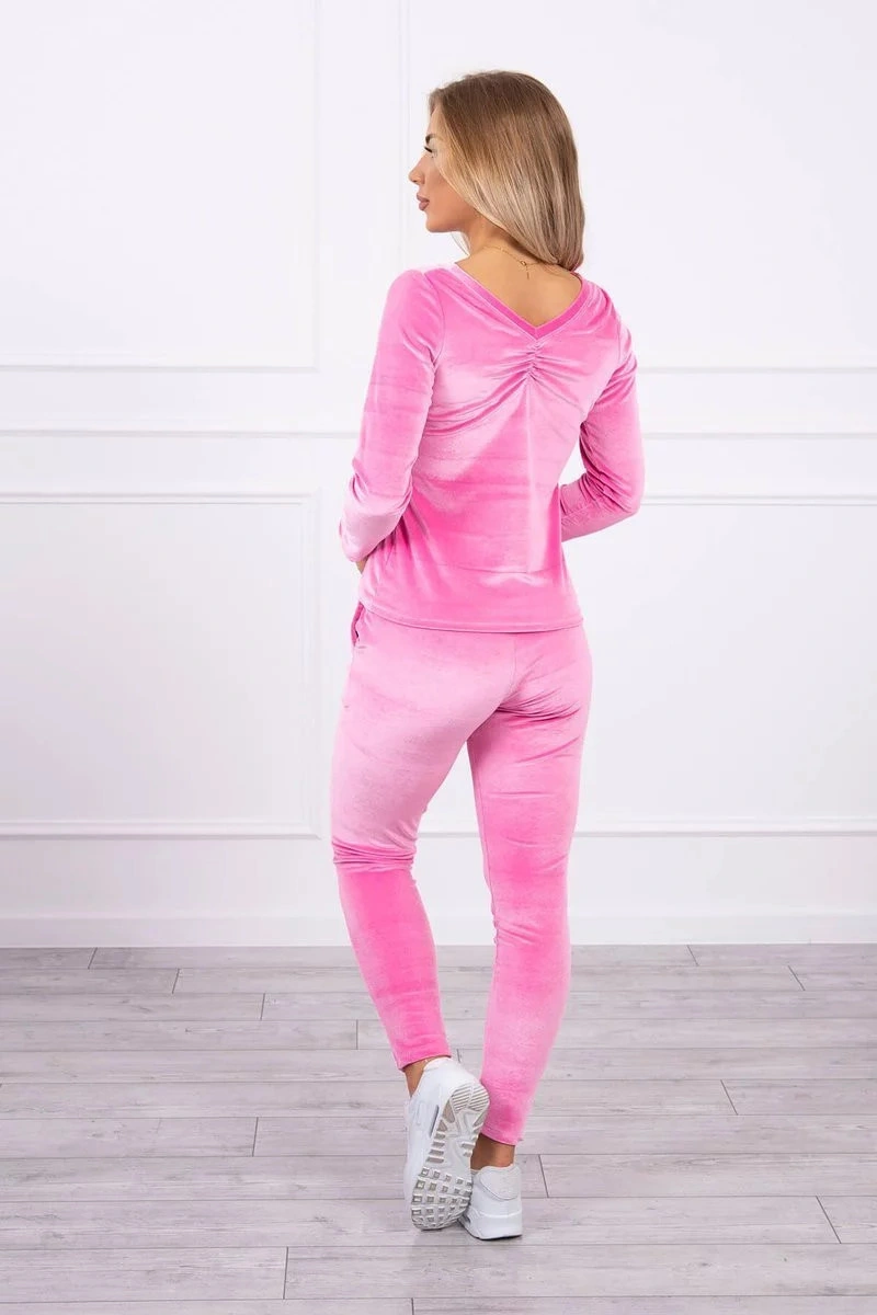 Prezentujemy Państwu komplet bluzy i spodni. Komplet wykonany z weluru. Bluza i spodnie posiadają z tyłu marszczenie. Bardzo modny i stylowy komplet. Komplet wykonany jest z wysokiej jakości materiału. Rozmiar jest uniwersalny i będzie odpowiedni dla Pań w rozmiarze S, M lub L.