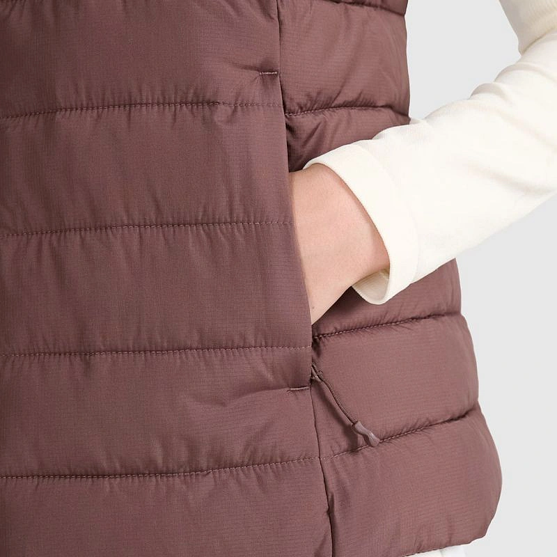 • Dámská péřová vesta bez rukávů ideální pro chladnější dny v přechodném období.