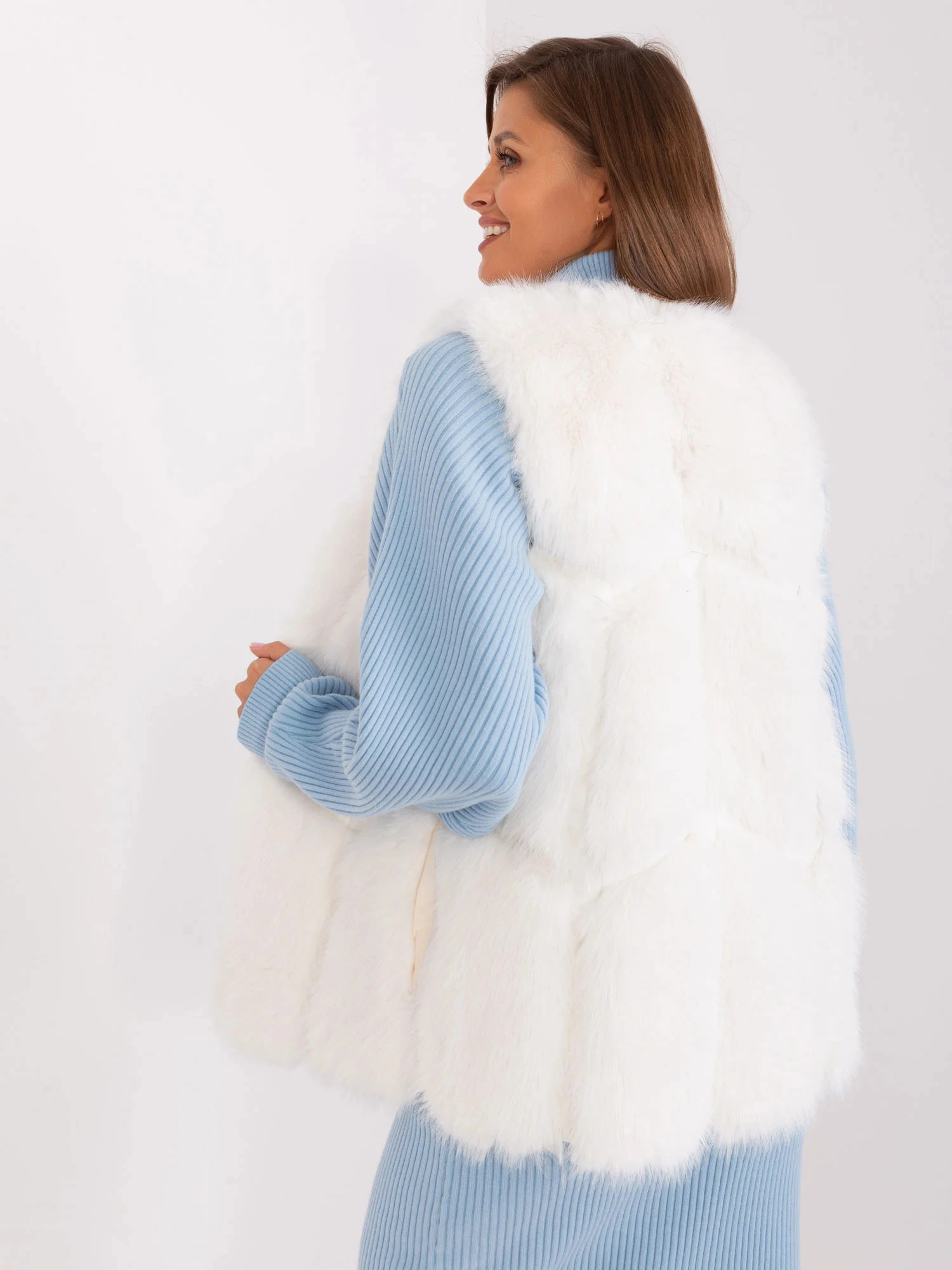 Kožešinová vesta v barvě ecru s podšívkou .