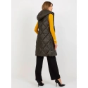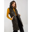 Khaki dlouhá prošívaná vesta z ekokůže .