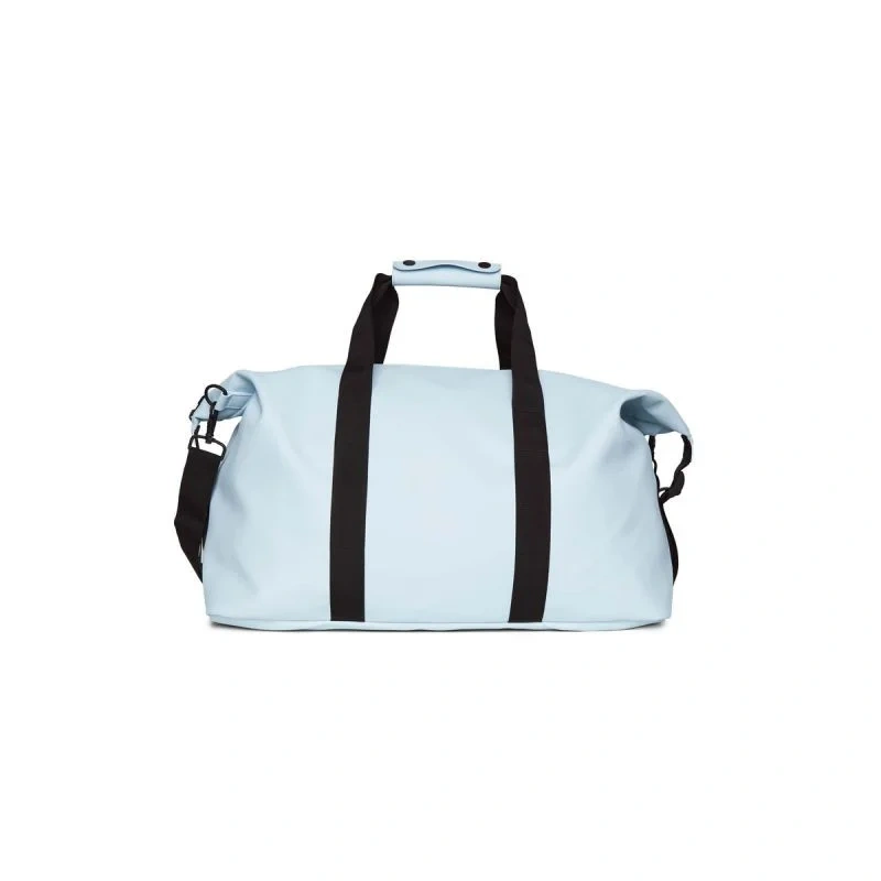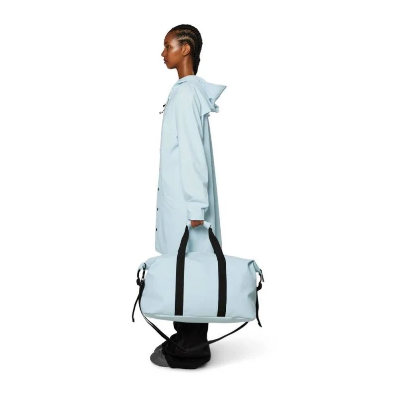 Víkendová taška je ušita z charakteristické voděodolné tkaniny Rains s PU povlakem.