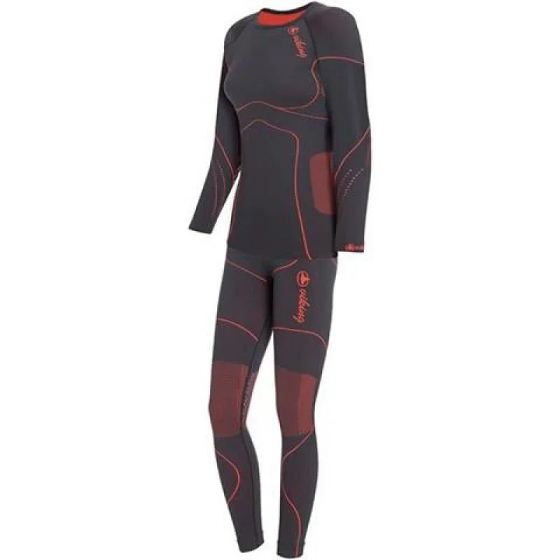 - Korálové detaily podtrhují sportovní styl a přiléhavý střih šedé termoaktivní soupravy, která se uplatní jako základní vrstva pod lyžařskou kombinézu i jako samostatný fitness outfit.