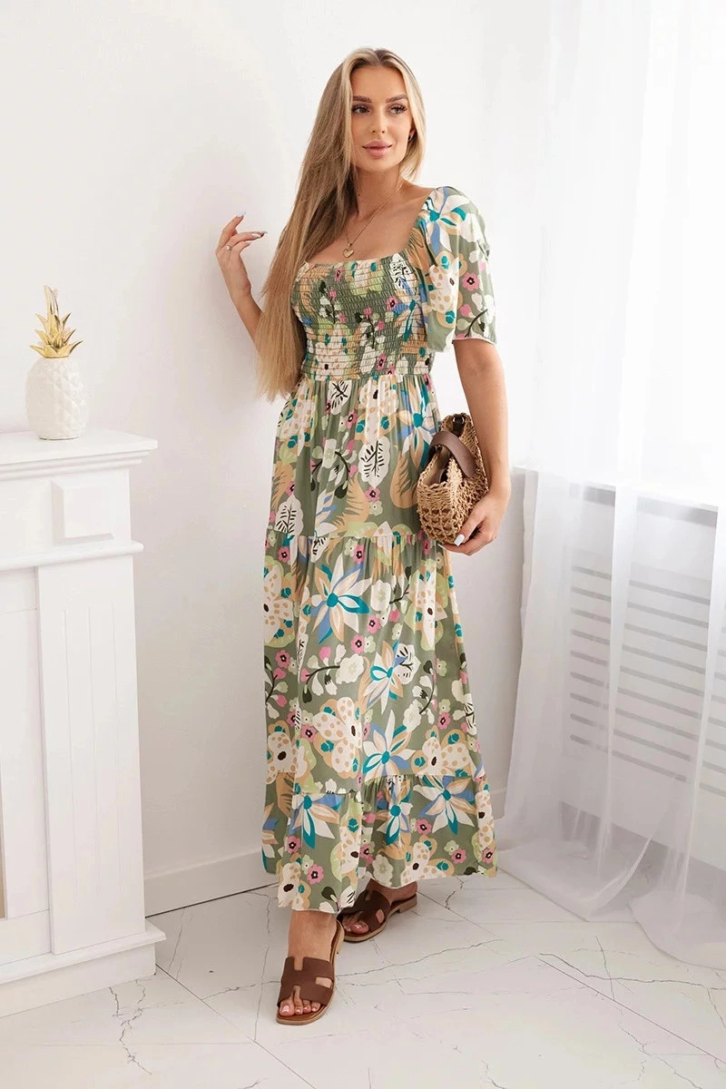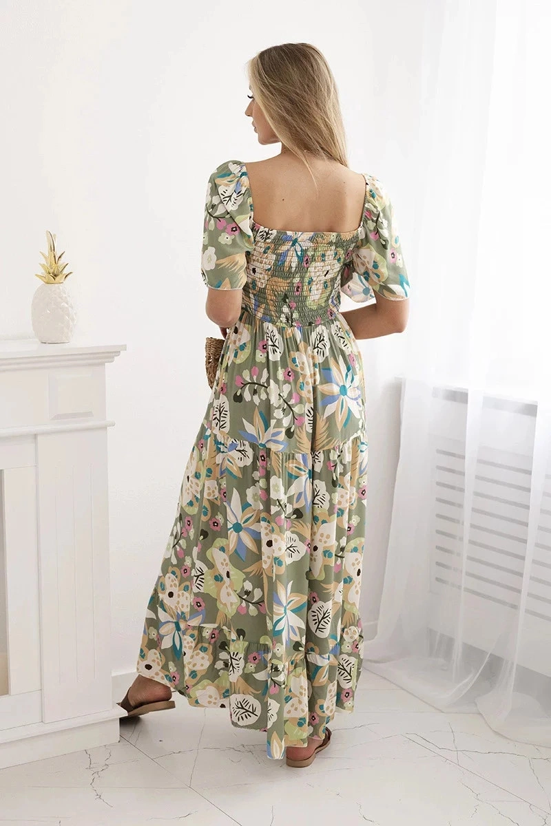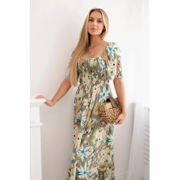 Viskózové šaty s volánkovým výstřihem 29477 khaki - Kesi UNI