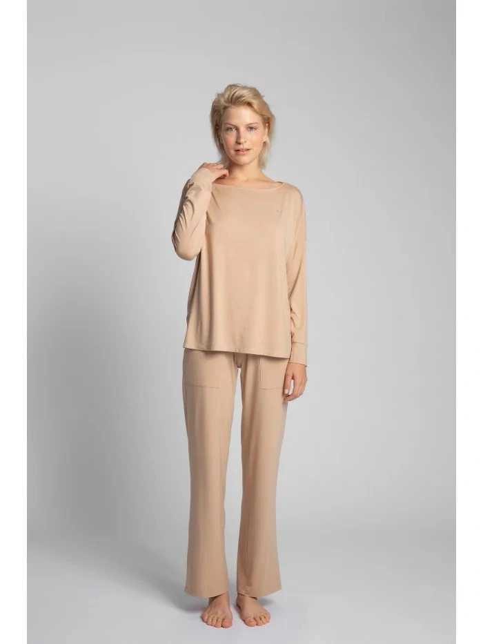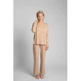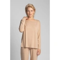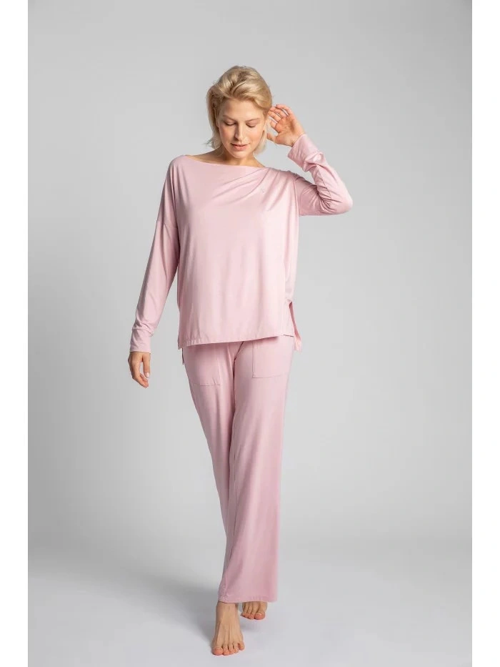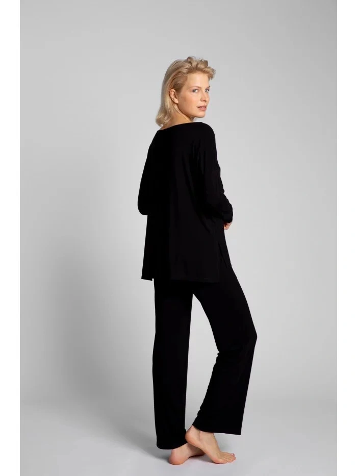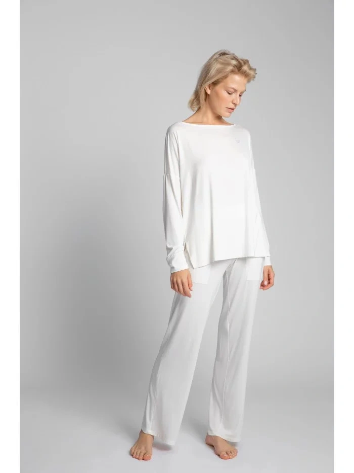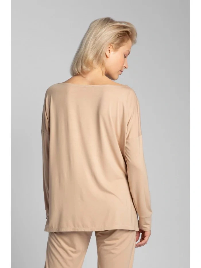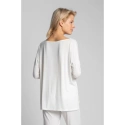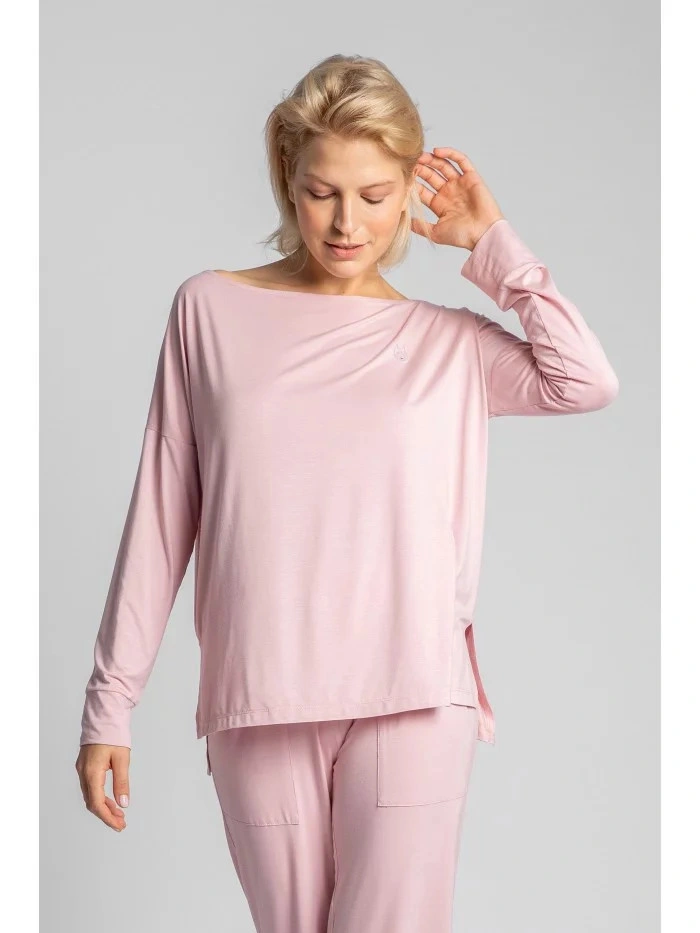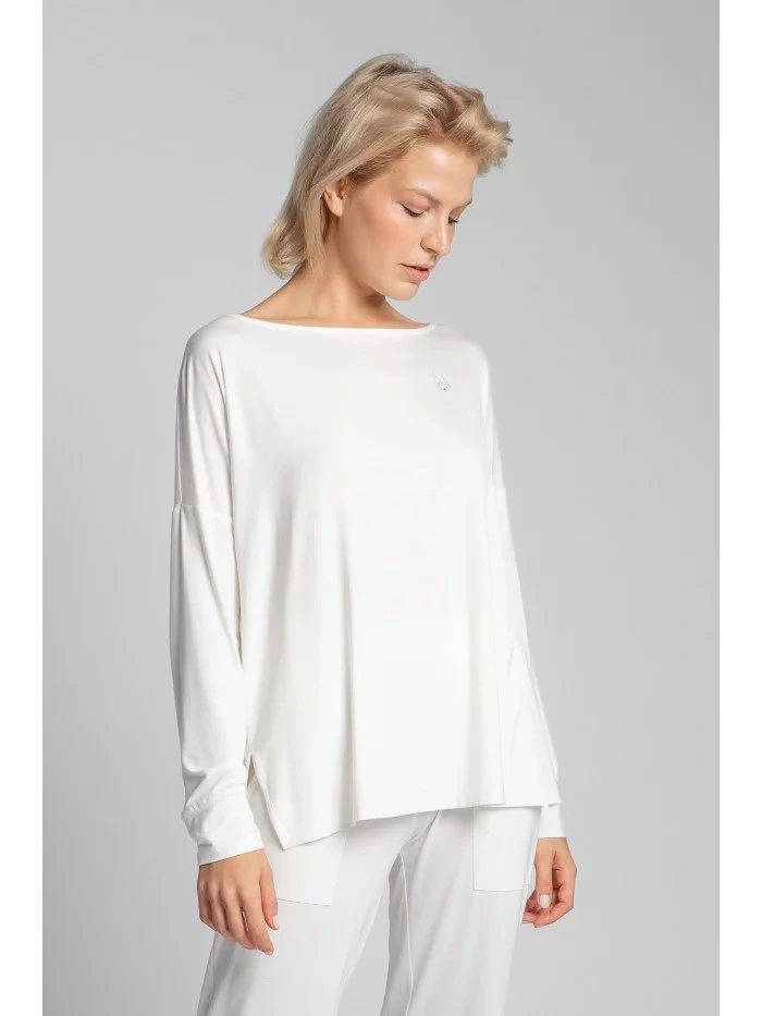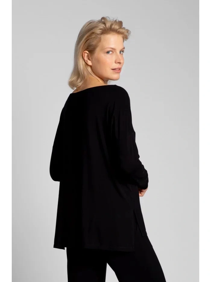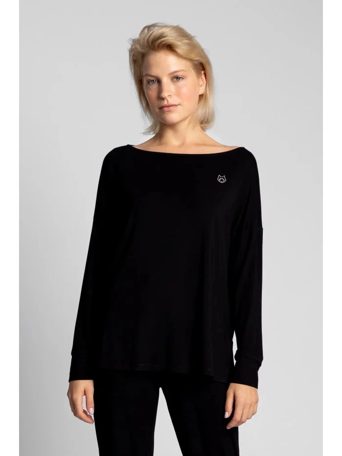 Uvolněný dámská halenka z viskózy s dlouhými rukávy a jemnými bočními rozparky. Je šetrná k pokožce a příjemný pro oči. Zdobí ji vyšívané logo vlka na hrudi a doplnit se dá jakýmkoliv typem pyžamových kalhot nebo legín na spaní. PODROBNOSTI O PRODUKTU: viskózní úplet měkká halenka s volným střihem a spadlými rameny vysoký - nízký design dlouhé rukávy boční rozparky vyšívané logo vlka na přední straně Naše modelka měří 174 cm a nosí velikost S/M