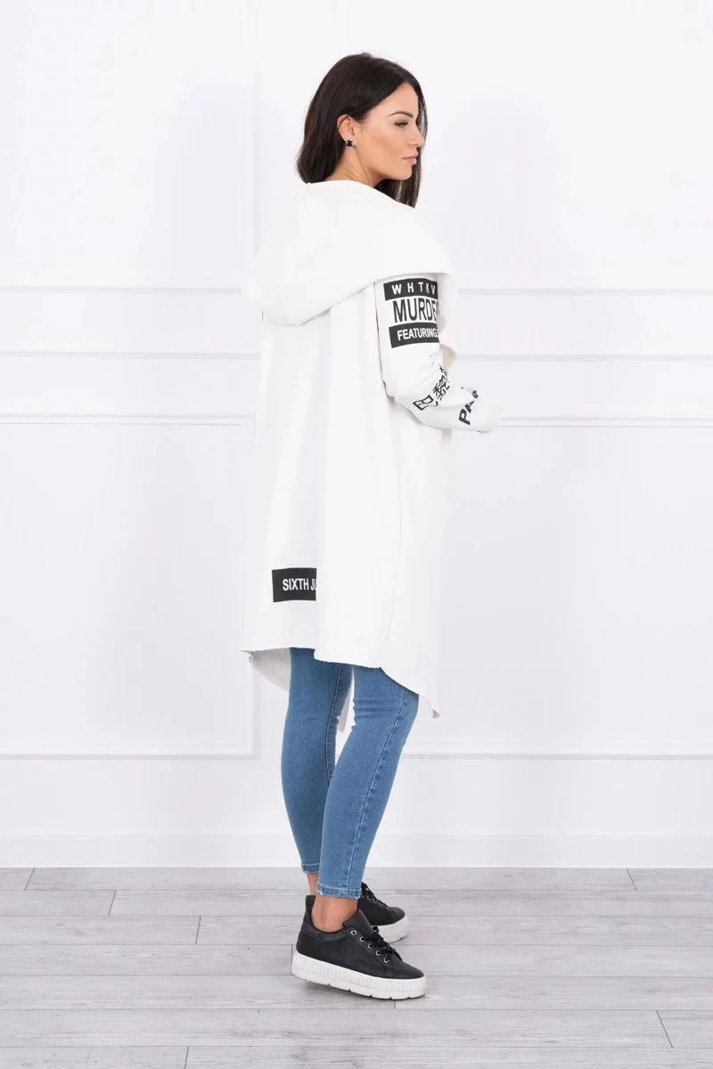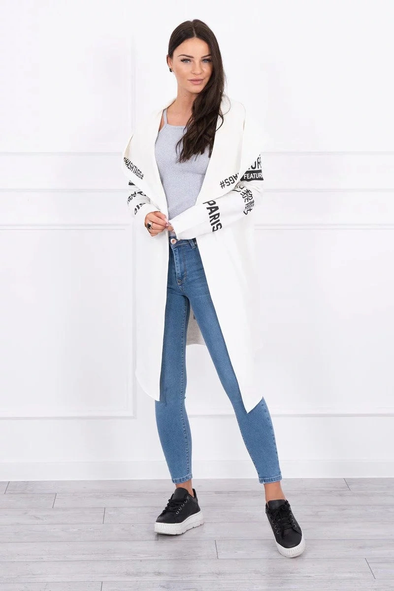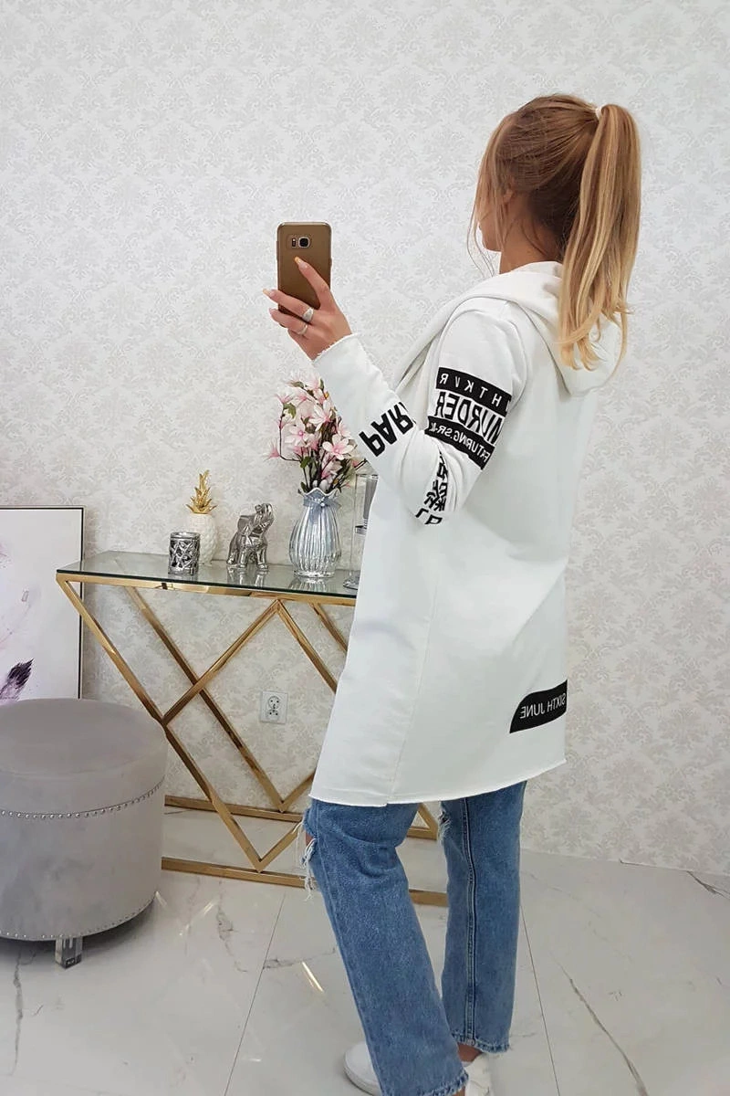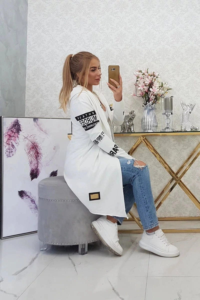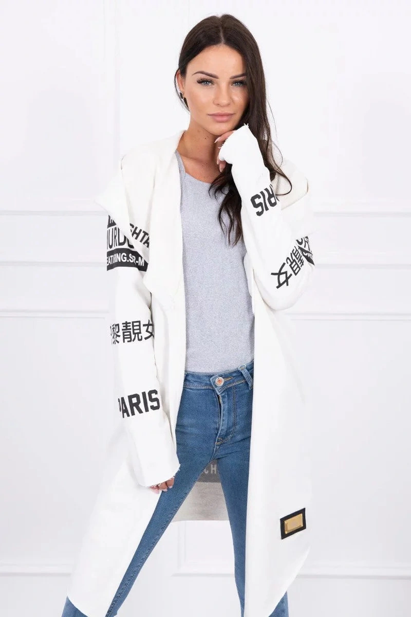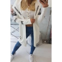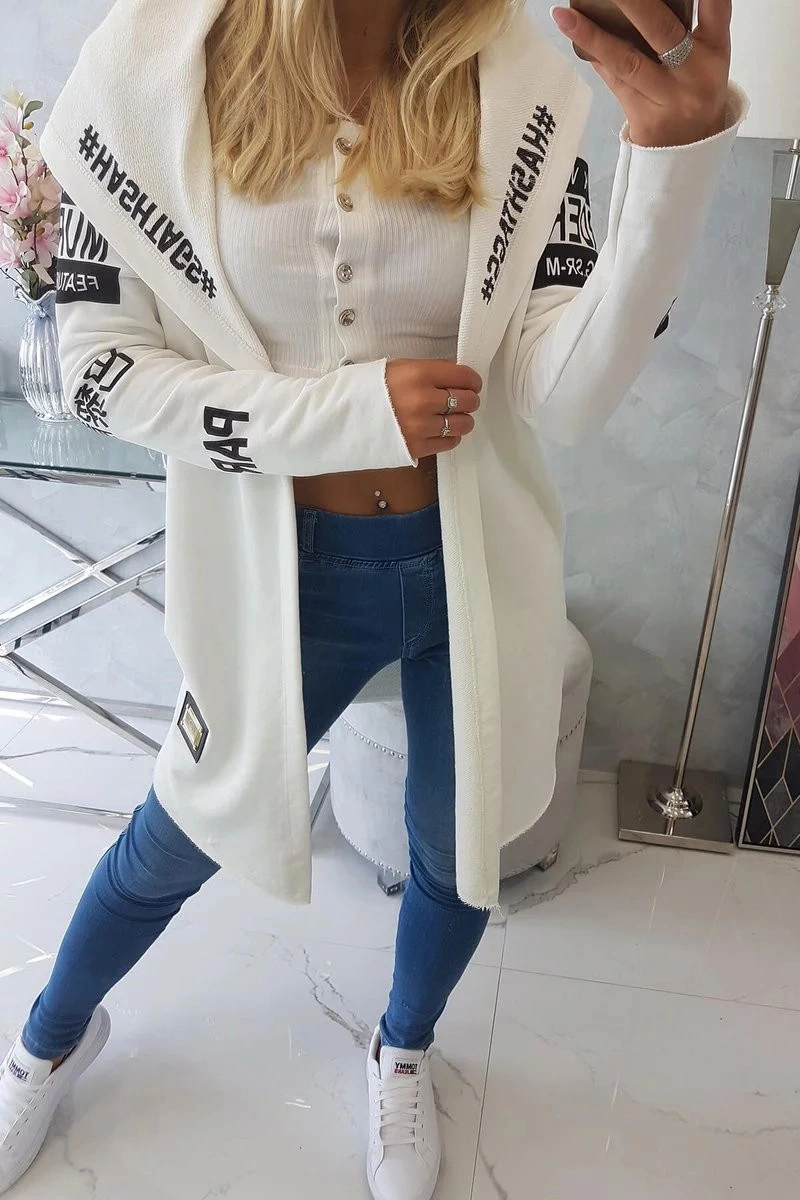 Představujeme vám dlouhou pelerínu s kapucí a nápisy. Svetr je vyroben z vysoce kvalitního materiálu. Velikost je univerzální a bude vhodná pro dámy ve velikostech S, M a L