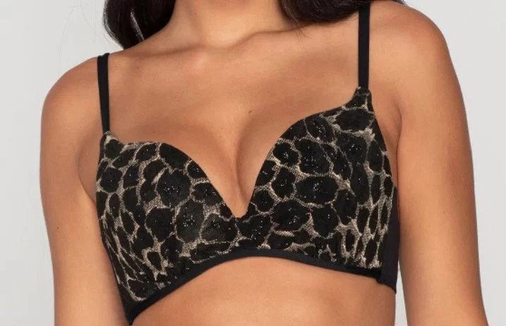 Bikiny se zvířecím potiskem z kolekce Hunter- bez kostice- měkké vyztužené košíčky- se třpytivým vzhledem- vzadu mají kovovou sponu na zapínání- kolem krku na zavazováníMateriál: 55% acetát, 39% polyester, 6% elastan