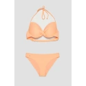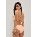 Push-up podprsenka s vyztuženým košíčkem. Vrchní díl plavek v broskvové barvě. Prostý. Ozdobné nabírání vpředu.