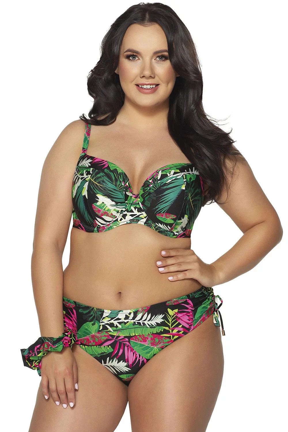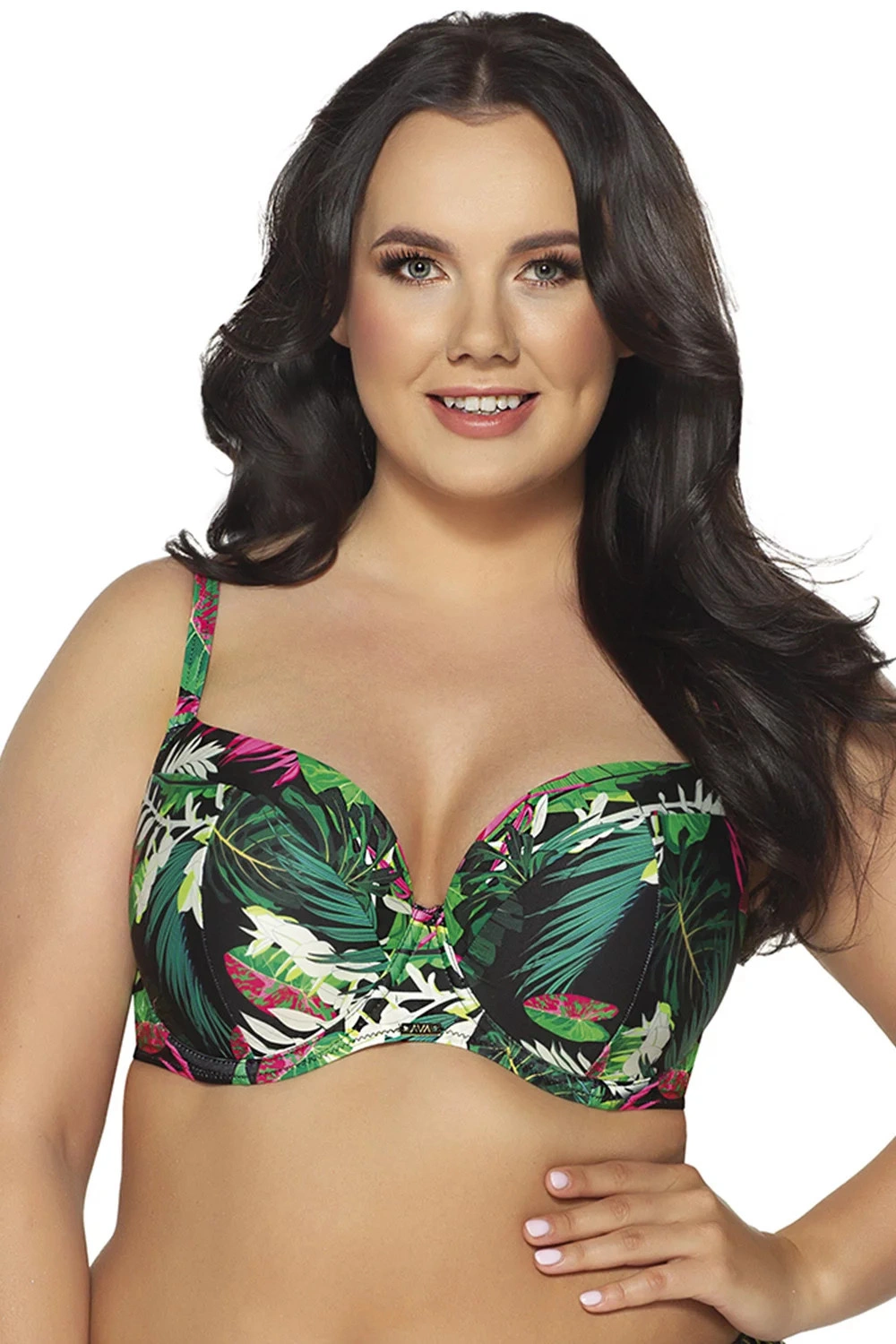 Dámský vrchní díl plavek od Avy. Model SK-201. Výrobek pro ženy. Podprsenka je vyztužená, s kosticemi. Ramínka nejsou odepínací, ale jsou posouvací. Zapínání na zádech na kovový klips.
