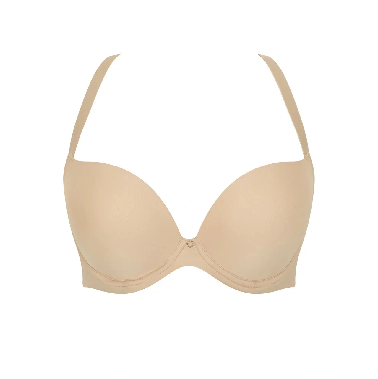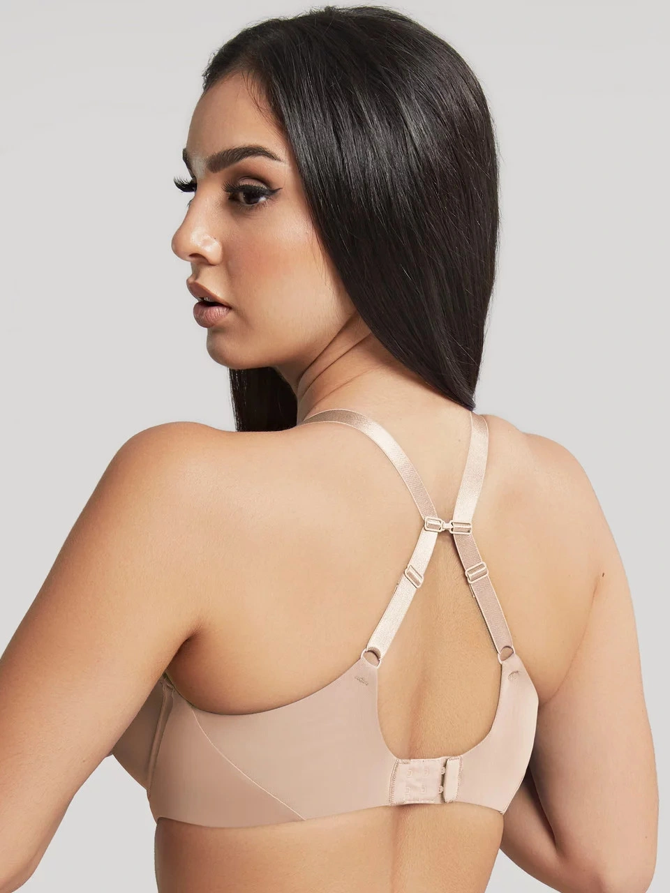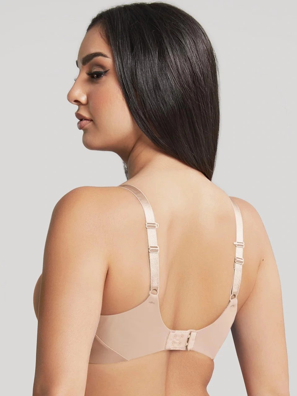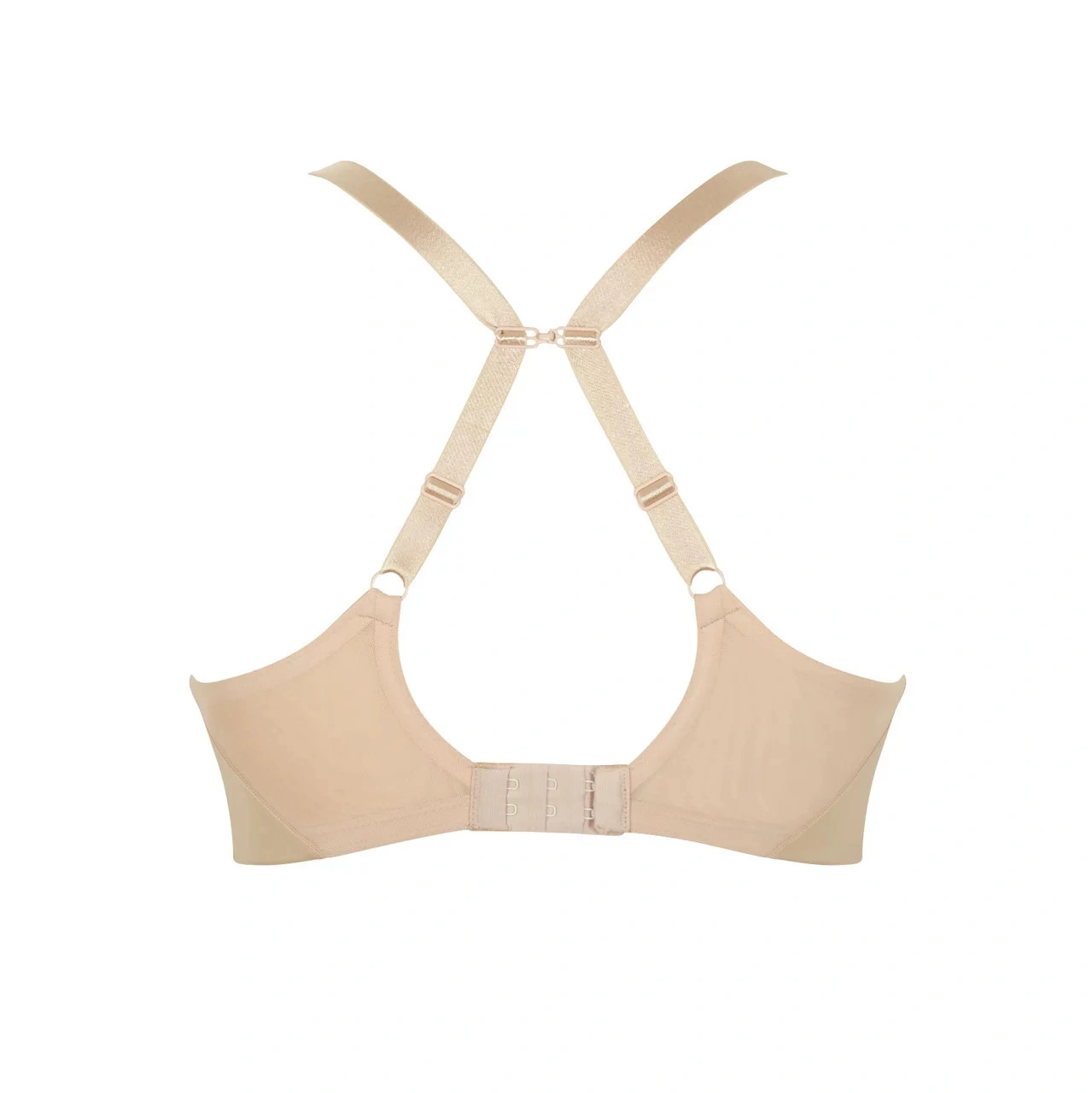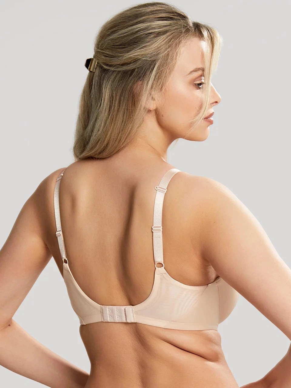 Dámská vyztužená podprsenka s kosticemi, posouvací ramínka, vzadu na zapínání na dva háčky.