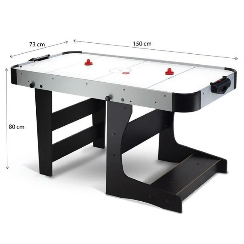 Stůl je vyroben z kvalitní MDF desky, která je odolná proti oděru, což se projevuje dlouhou životností. Hrací plocha je vybavena speciálními vzduchovými otvory, které usnadňují pohyb puku a činí hru dynamičtější. Pod stolem je instalována účinná baterie.