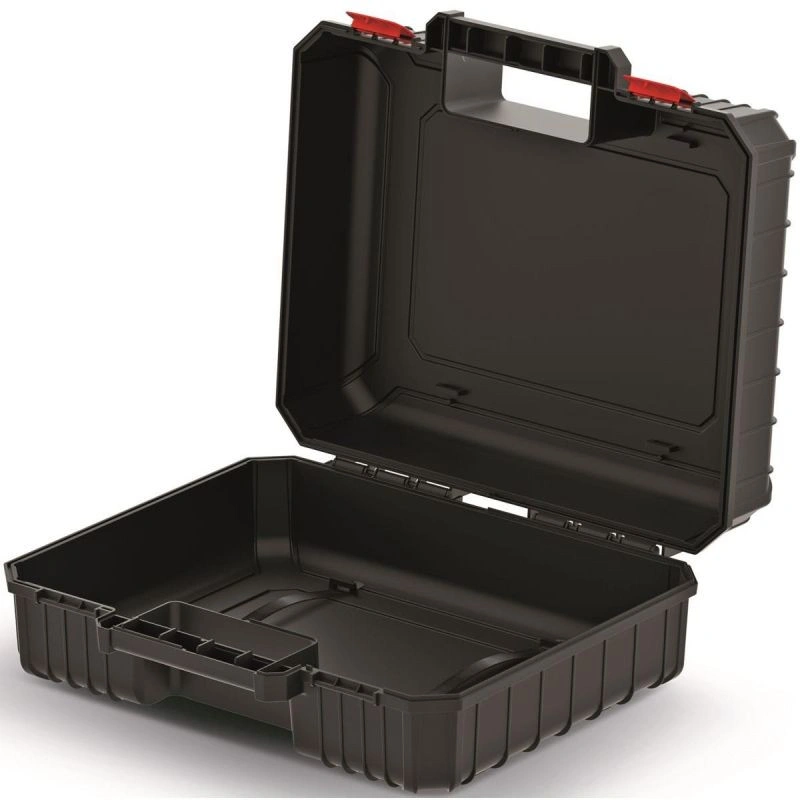 Box má žebrovanou konstrukci, robustní dvě spony, tělo je vyrobeno z vysoce odolné polymerové směsi a víko z odolného polykarbonátu.