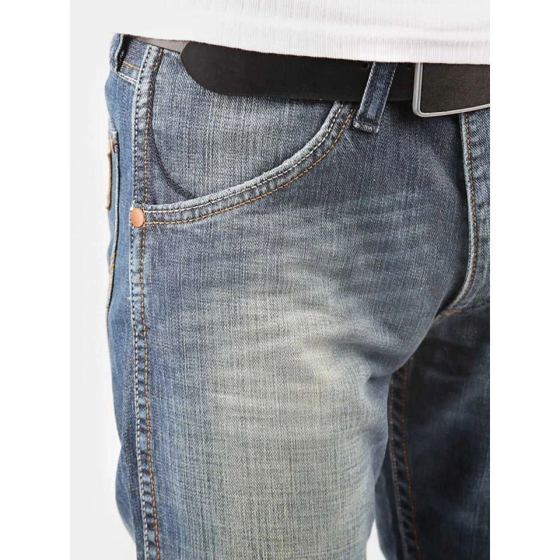 Pánské džínové kalhoty s rozšířenými nohavicemi a nízkým sedem, zapínání na knoflíky. Kožená nášivka na zadní kapse s logem výrobce.