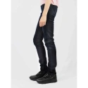 Dámské džínové kalhoty s nízkým sedem, zúženými nohavicemi, zapínáním na zip a koženou nášivkou s logem na zadní kapse.