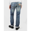 Pánské džínové kalhoty s nízkým sedem, zúženými nohavicemi, zapínáním na knoflíky a koženou nášivkou s logem na zadní kapse.