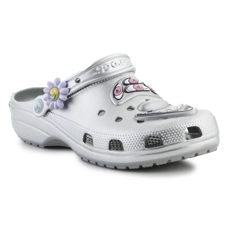 tyto žabky jsou vyrobeny z materiálu Croslite™, který poskytuje vynikající odpružení a oporu, a jsou ideální pro každodenní nošení. Stříbrná barva dodává moderní a stylový nádech, který se hodí ke každému oblečení.