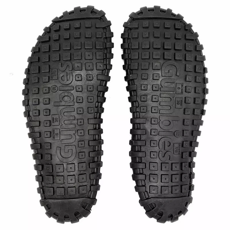 • GUMTREAD™ - Jako základní materiál pro naše inovativní podrážky jsme zvolili recyklovanou pryž s dvojím cílem: pružnost a odolnost. Recyklovaná pryž nabízí dezén podobný pneumatikám, který zajišťuje přilnavost, abyste se mohli pohybovat, ať už chodíte v pantoflích před zahradou, nebo dobýváte svět v žabkách.