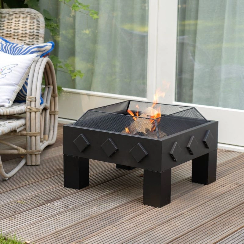 Zahradní ohniště Kvadrat od společnosti HEAT Outdoor Living je moderní ohniště geometrického čtvercového tvaru, které stojí na čtyřech ocelových nohách. Díky integrovanému ochrannému krytu proti jiskrám poskytuje větší bezpečnost při používání a umožňuje vám volně si užívat oheň na zahradě nebo na terase. Konstrukce je vyrobena z práškově lakované oceli, která se časem pokryje přírodní patinou, což jí dodá ještě větší charakter.