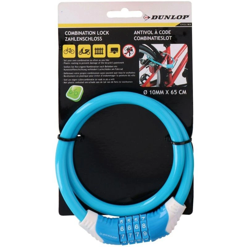 Spirálový zámek na kolo Dunlop s kombinací 10 mm x 65 cm modrý 1042817