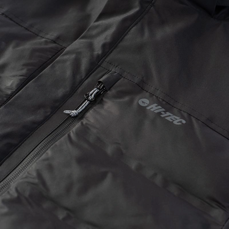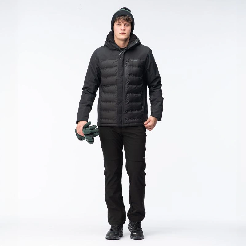 Pánská zateplená bunda Hi-TecHELTEN má voděodolnou membránu s vodním sloupcem 10 000 mm H2O a prodyšnost 1 000 g/m²/24 h. Navíc povrchová úprava DWR aplikovaná na bundu zvyšuje úroveň nepromokavosti vnější tkaniny. Syntetická výplň poskytne tepelný komfort a neztratí své vlastnosti, ani když navlhne. Tepelně reflexní úprava na vnitřní straně pomáhá udržet správnou teplotu, když venku mrzne. Bunda HELTEN má vnitřní kapsu, kapsu na skipas a další kapsu na trupu. Stahovací šňůrka v pase umožňuje upravit střih a chránit tak záda před chladným vzduchem.