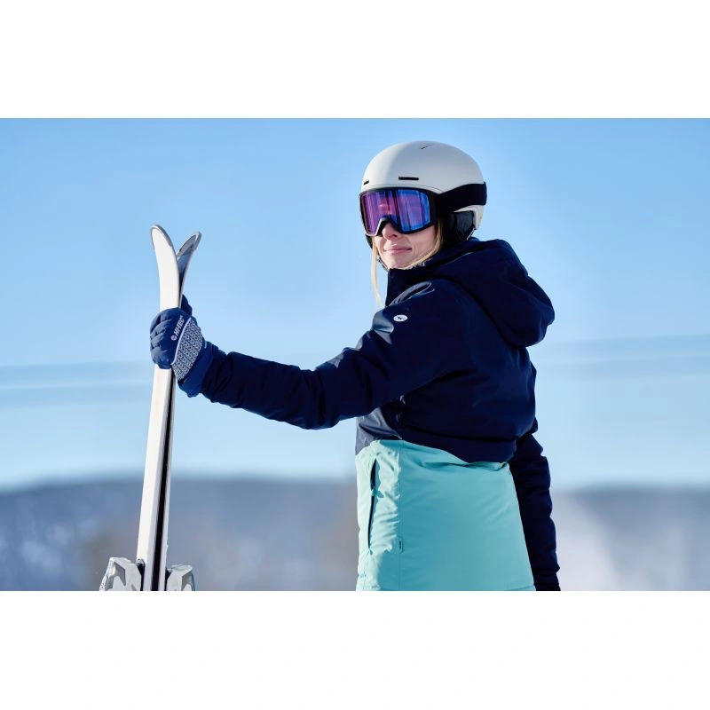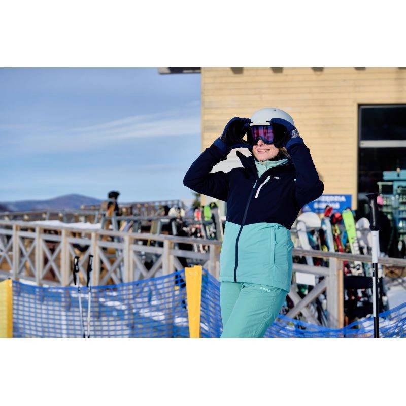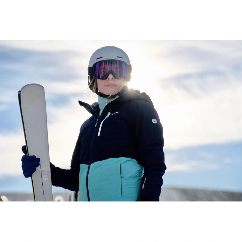 Dámská lyžařská bunda LADY MORENA má membránu s voděodolností 10 000 mm H2O a prodyšností 5 000 g/m²/24 h. Povrchová úprava DWR aplikovaná na bundu zvyšuje úroveň voděodolnosti vnější tkaniny. Podlepené švy utěsňují švy proti promočení. Odvětrávání v podpaží pomáhá udržovat správnou teplotu během aktivity. Bunda LADY MORENA má prvky, které se vám budou hodit při lyžování, tj. kapsu na skipas, sněhový pás a vnitřní rukávy.