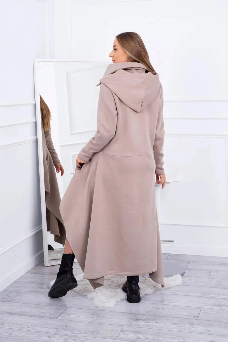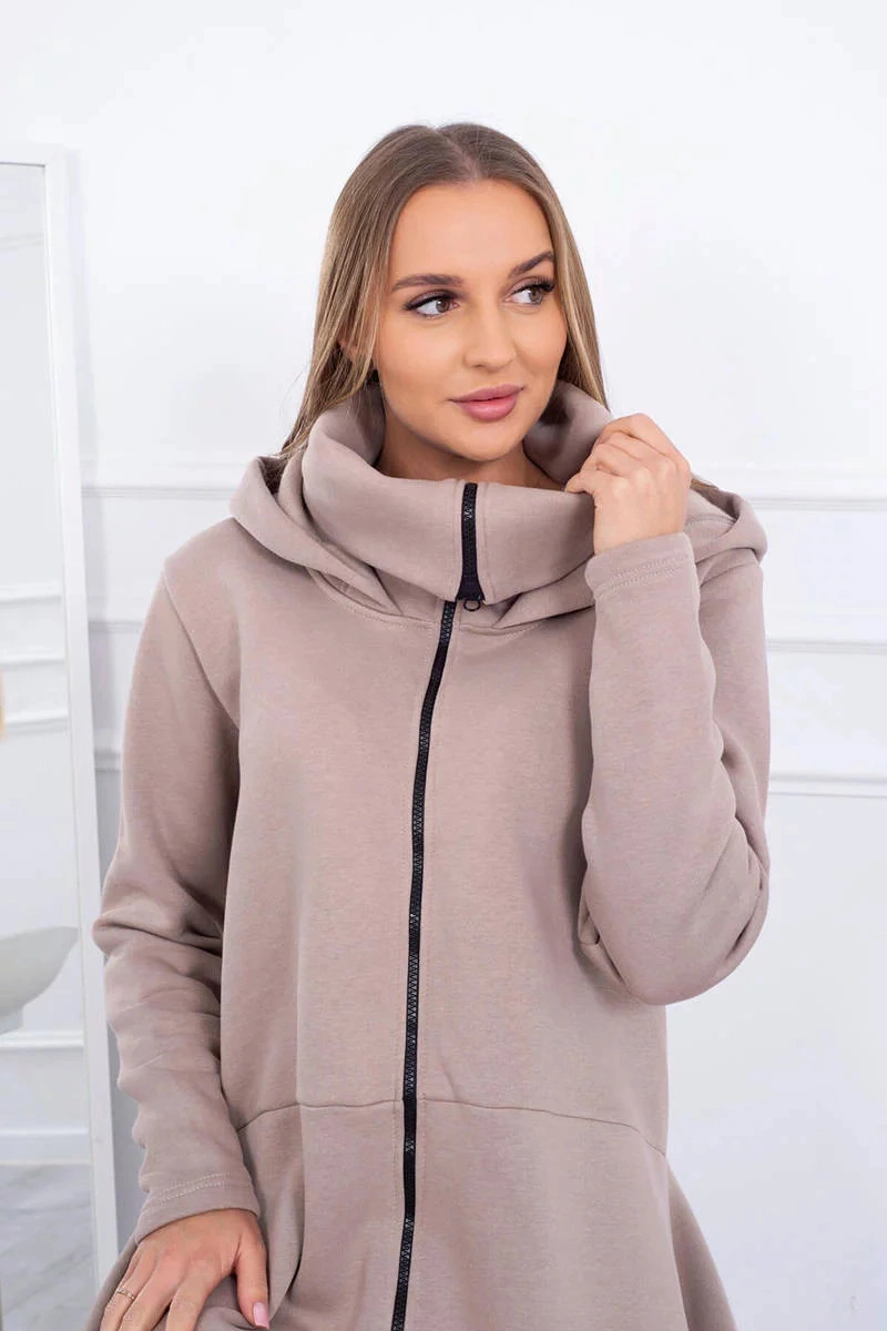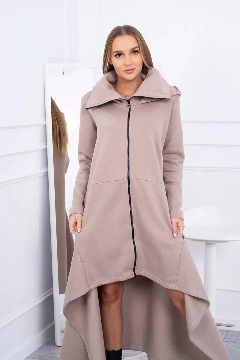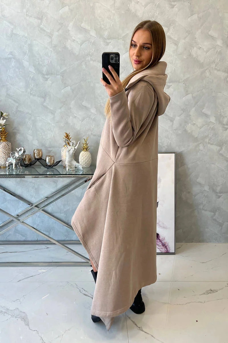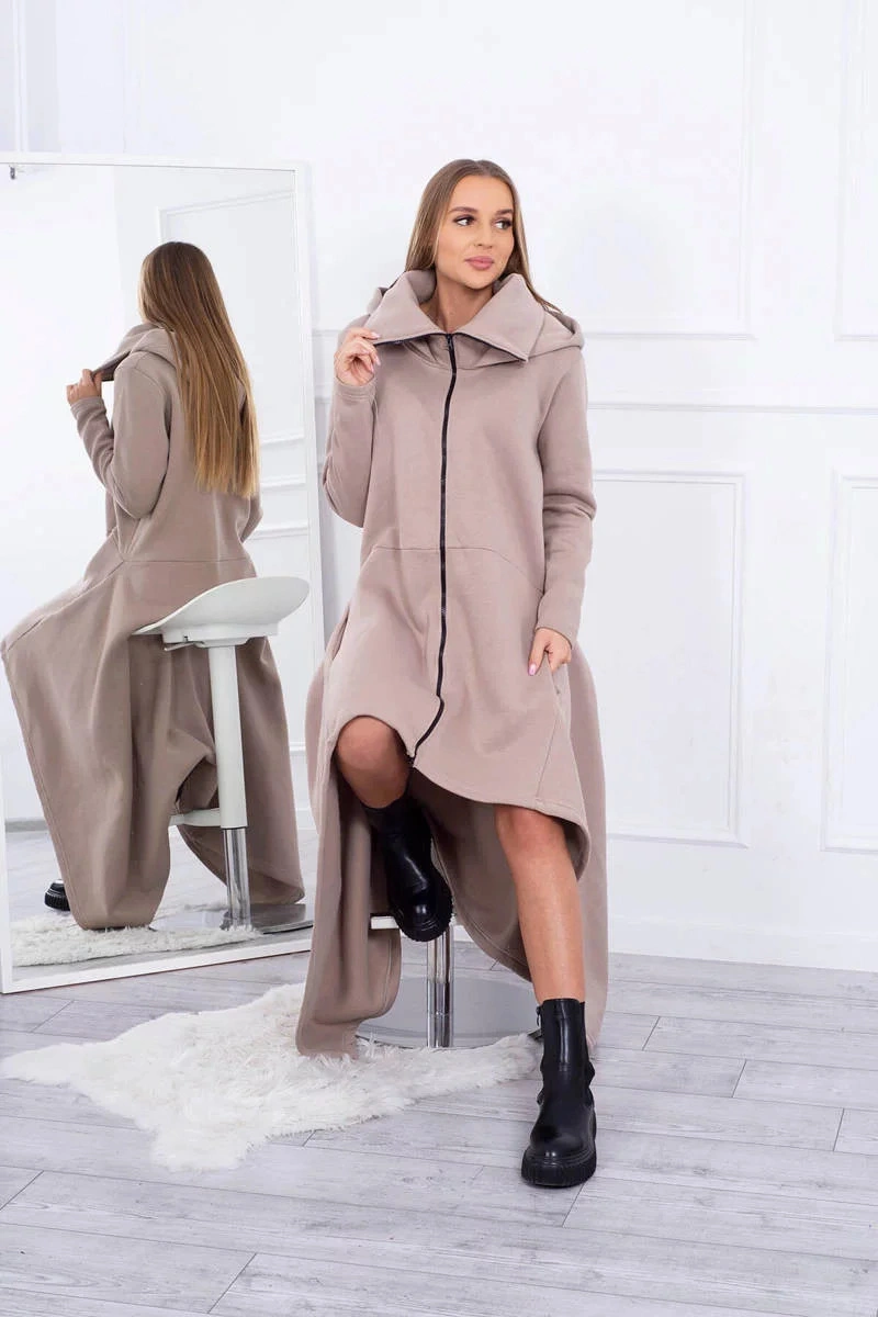 Představujeme vám módní šaty. Šaty mají kapuci, zapínání na zip a delší boky. Ideální každodenní poloha. Šaty jsou vyrobeny z vysoce kvalitní zateplené tkaniny. Velikost je univerzální a vyhovuje dámám, které nosí velikost S, M nebo L.