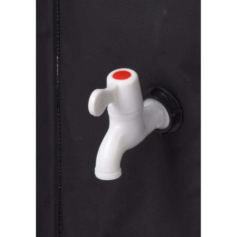 Nádrž je vybavena kohoutkem, který usnadňuje řízený odběr a výdej vody pro různá použití, vypouštěcí ventil poskytuje pohodlí při vyprazdňování nádrže a její údržbě a sítko zajišťuje čistotu shromážděné vody, čímž se eliminuje riziko kontaminace, a také stálý přístup čerstvého vzduchu.