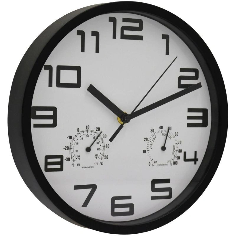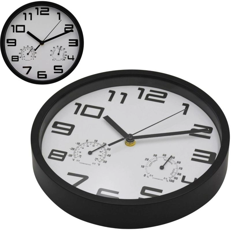 NÁSTĚNNÉ HODINY 25CM S TERMOMETREM BÍLÉ jsou moderní hodiny s přehledným zobrazením času, teploty a úrovně vlhkosti. Mají jednoduchý, minimalistický design a jsou ideální do kanceláří, moderních interiérů i na pracoviště.