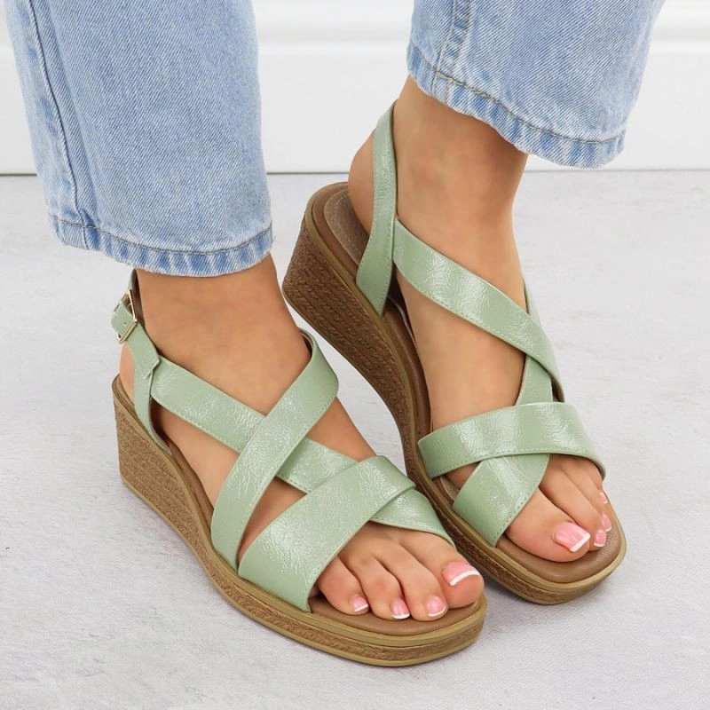 Popis Zelené lakované dámské sandály na platformě Sergio Leone SK298