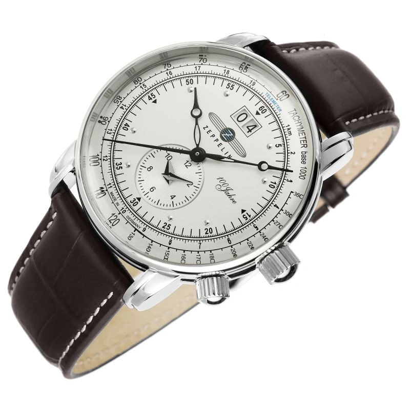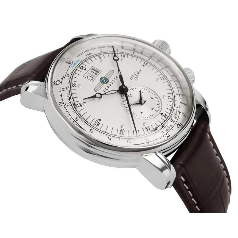 Limitovaná edice leteckých hodinek 100 Jahre 7640-1 byla vytvořena na oslavu 100leté historie legendární značky Zeppelin. Jedná se o model, který kombinuje nadčasovou eleganci stříbrného obalu a kovového ciferníku v barvě šampaňského s funkcí duálního času, ideální pro světoběžníky a milovníky stylu. Díky velkému ukazateli data a spolehlivému quartzovému strojku jsou nejen estetickým doplňkem, ale také praktickým nástrojem pro každý den.