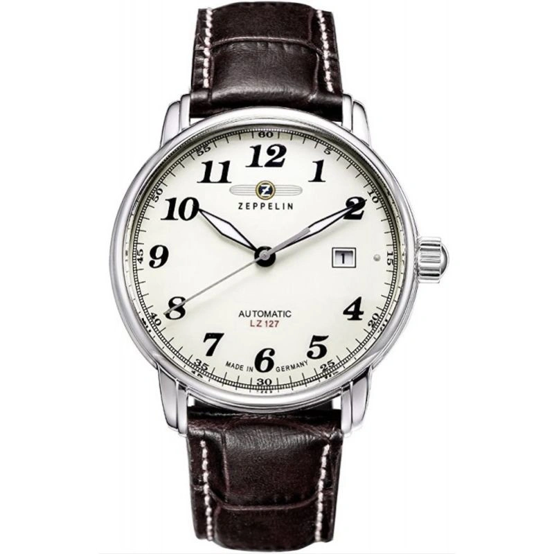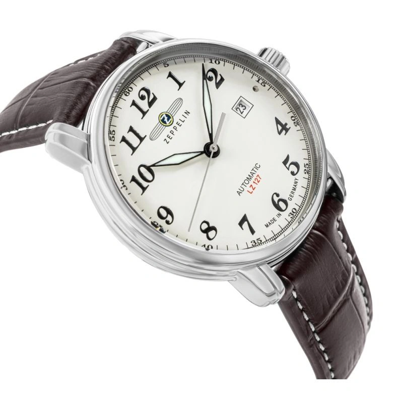 Pánské hodinky Zeppelin LZ 127 Automatic 7656-5 jsou elegantní hodinky s klasickým charakterem, vybavené automatickým strojkem Miyota Cal. 821A s 21 drahokamy a rezervou chodu až 42 hodin, takže nevyžadují baterie a energii získávají z pohybu zápěstí. Pouzdro z ušlechtilé oceli o průměru přibližně 40 mm chrání béžový ciferník, který hodinkám dodává nadčasový půvab, zatímco ručičky jsou chráněny minerálním sklem. Model má datumovku a průhledný rámeček, který umožňuje obdivovat fungování mechanismu. Vodotěsnost 5 ATM zajišťuje bezpečnost při každodenním používání, takže hodinky jsou praktickou a stylovou volbou.