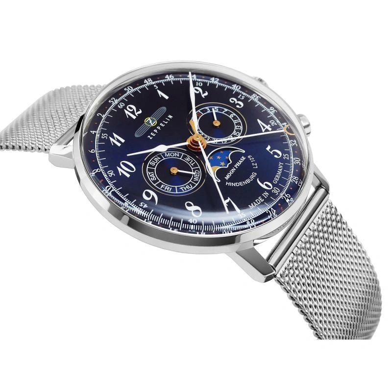 Když si vyberete hodinky Zeppelin, saháte po něčem víc než jen po hodinkách - je to historie vtělená do elegantní podoby, preciznost v každém detailu a nadčasový luxus, který vás bude provázet po dlouhá léta. Hodinky Zeppelin 7036M-3 jsou skutečnou poklonou minulé éře, kdy kovově tmavě modrý ciferník a kontrastní sněhově bílé detaily evokují vzpomínky na velké letecké výpravy. Díky funkcím, jako je ukazatel fáze měsíce, kalendář a den v týdnu, se tento model stává nejen symbolem nadčasového stylu, ale také praktickým každodenním společníkem.