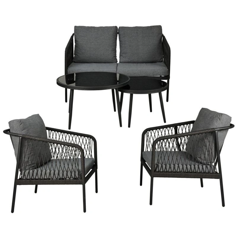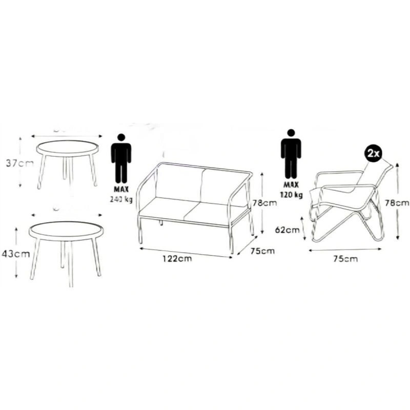 Dvě pohodlná křesla, dvoumístná pohovka a praktické 2 stolky tvoří ucelený a stylový celek. Nemusíte nic doplňovat - získáte hotový set, který promění váš zahradní prostor. Ideální jak pro každodenní relaxaci, tak pro rodinná setkání nebo letní večery při svíčkách.