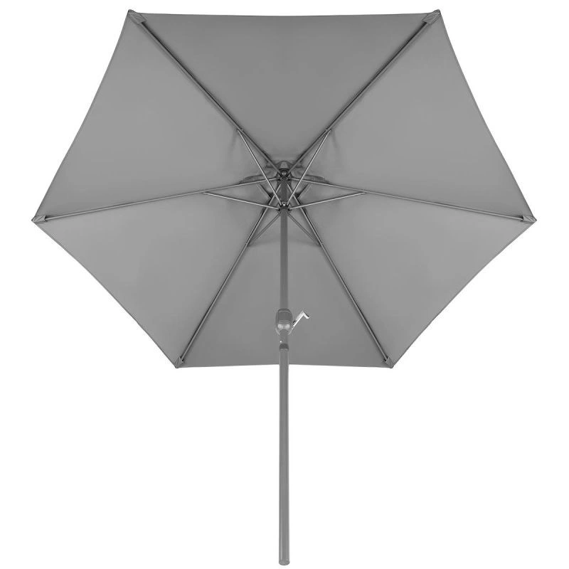 Treat yourself, your family and your friends to a bit of luxury during parties or barbecues. The set includes 4 comfortable folding chairs covered in dirt-repellent, UV-resistant and warp-resistant Textilene and an elegant table made of 5 mm thick tempered glass with an opening for an umbrella, which is also included in the set. 2.7 m wide (diameter of the unfolded umbrella) and extendable with a crank handle, the umbrella will protect you and your guests from the scorching sun. The chairs can be folded at any time, which will be useful e.g. for mowing the lawn. And if you wish, you can use the chairs, the table and even the umbrella separately e.g.: by the pool, just by purchasing the umbrella stand, as it is not included in the set.