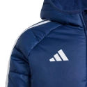 Dětská bunda adidas z fotbalové řady Tiro bude vhodná i pro každodenní nošení. syntetická výplň rovnoměrně rozložená v horizontálních širokých panelech pomáhá udržovat optimální tělesnou teplotu. tradiční střih. zip po celé délce. boční kapsy na zip. elastické lemy na manžetách a spodním lemu. neodnímatelná nenastavitelná kapuce nasazená na vysokém límci. pruhy na rukávech. decentní logo na přední straně.