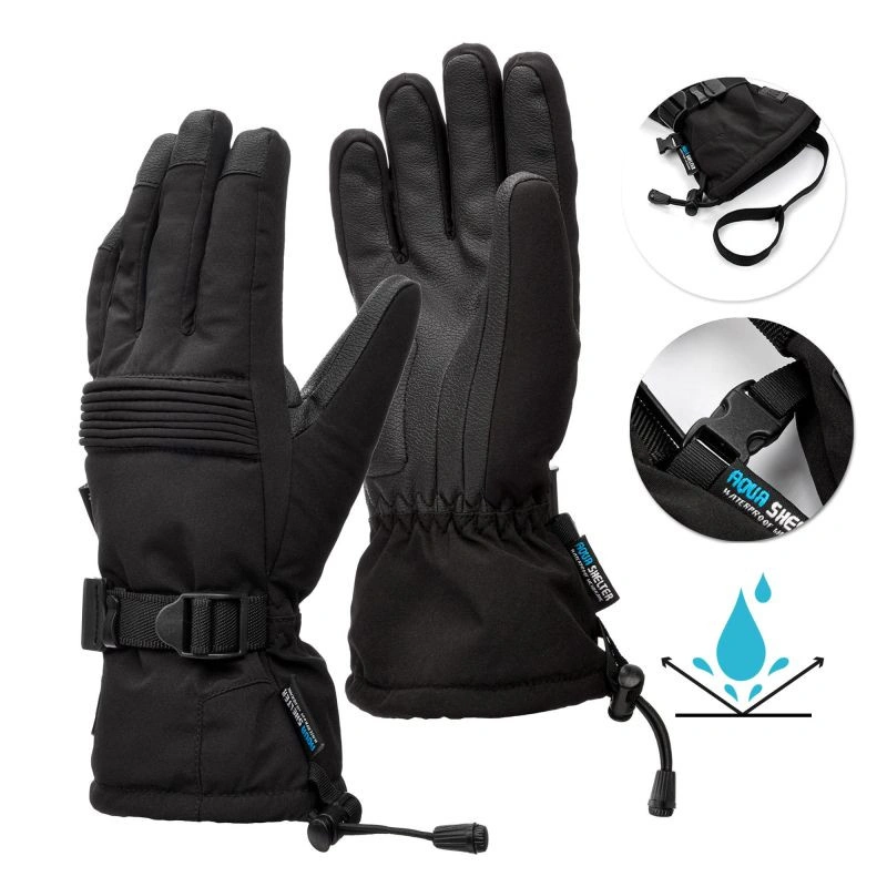 Nastavitelné stahovací šňůrky a posuvné přezky, stejně jako gumičky na zápěstí, zajišťují pevné uchycení a zabraňují sklouzávání rukavic z ruky nebo propouštění chladného vzduchu. Na vnější straně jsou přezky, které usnadňují skladování rukavic v páru, a také úchyty, které umožňují volné zavěšení rukavic na zápěstí, když se nepoužívají.