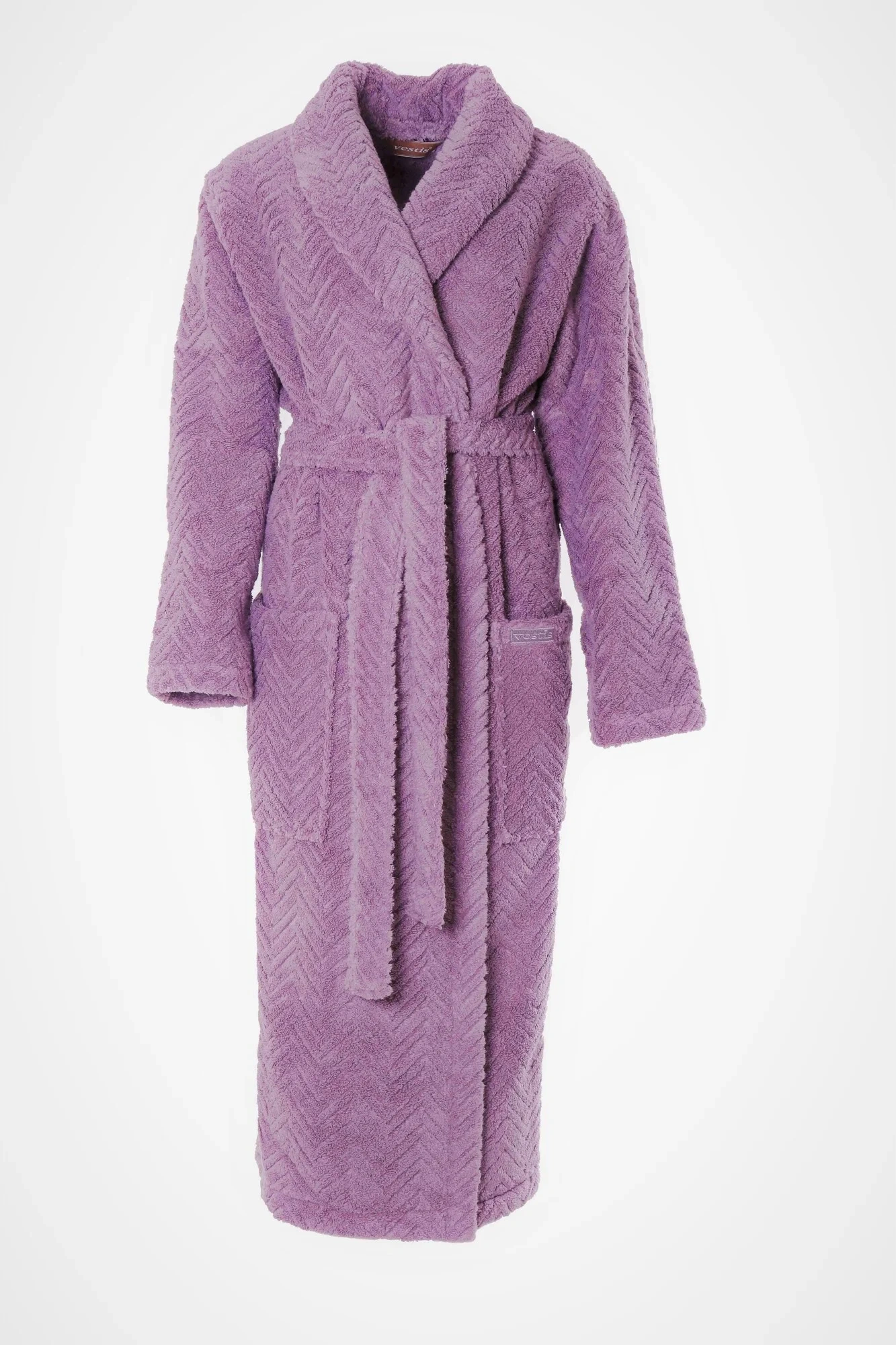 Dlouhý, teplý župan se šálovým límcem. V pase na zavazování Vroubkovaný vzor Materiálové složení: 10