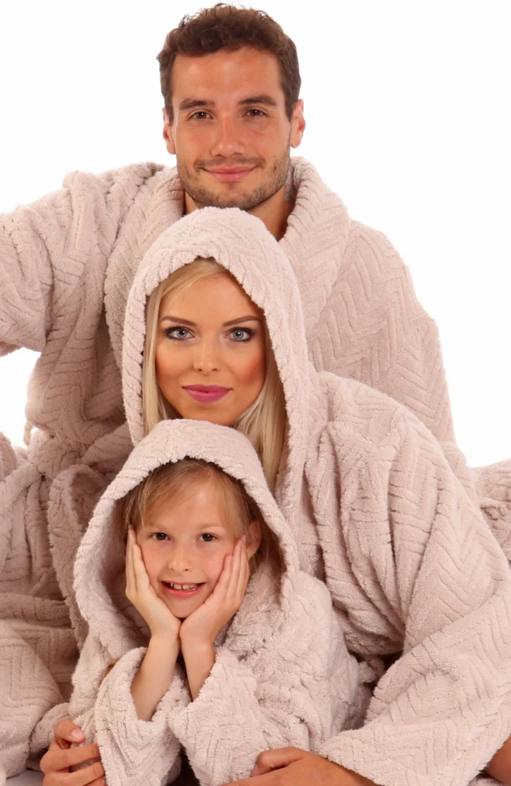 Župan - se šálovým límcem, - vyrobený z měkké tkaniny, - s efektním copánkovým pleteným vzorem